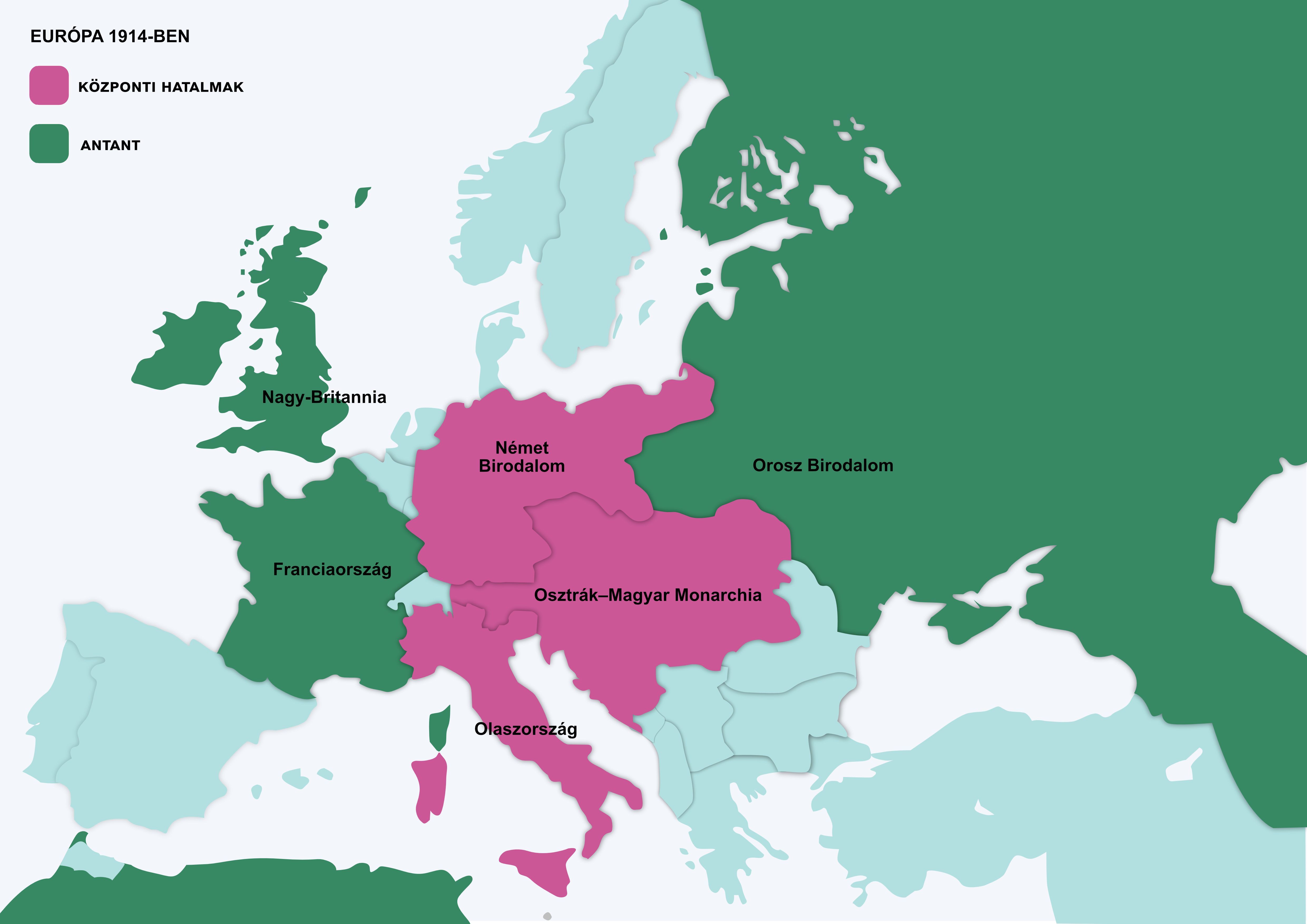 A 19. század második felében az európai országok egymás közti viszonyait a korábbi, dinasztikus politika helyett a nemzetállamok szövetségi politikája határozta meg. Az erőviszonyok is ennek tükrében változtak. Európa közepén új államok jöttek létre (Olaszország, Osztrák–Magyar Monarchia, Németország), amelyek nagymértékben meghatározták a következő évek diplomáciai viszonyait. Az 1866-os porosz–osztrák, majd az 1870–71-es porosz–francia háborút követően világossá vált, hogy a térség nagyhatalmi politikájának legfőbb alakítója Németország lesz. Karizmatikus vezetőjének, Bismarck kancellárnak Európa-politikája azon a pilléren nyugodott, hogy a franciákban dúló revans vágyát diplomáciai elszigeteléssel fojtsa meg. Ebben partnerre talált az Osztrák–Magyar Monarchiában és Olaszországban. Bismarck 1890-es menesztése után az új császár, II. Vilmos konfrontatívabb külpolitikát folytatott. A német igények a Közel-Keleten és Afrikában ütköztek az ott pozícióikat védő Nagy-Britannia és Franciaország érdekeivel, így Németország és szövetségesei egyre inkább szembekerültek a két nagyhatalommal. Németország legfőbb szövetségese az Osztrák–Magyar Monarchia volt, amelynek érdekei ütköztek Oroszországgal a Balkánon. Ennek következtében Németország és Oroszország között korábban is csak semlegességet ígérő megállapodás tudott megszületni, melyet II. Vilmos már nem újított meg, így Oroszország más szövetségesek után nézett. A századfordulóra körvonalazódni látszott két szövetségi rendszer Európában, amelyek a későbbiekben az első világháború egymással szemben álló feleit határozták meg.