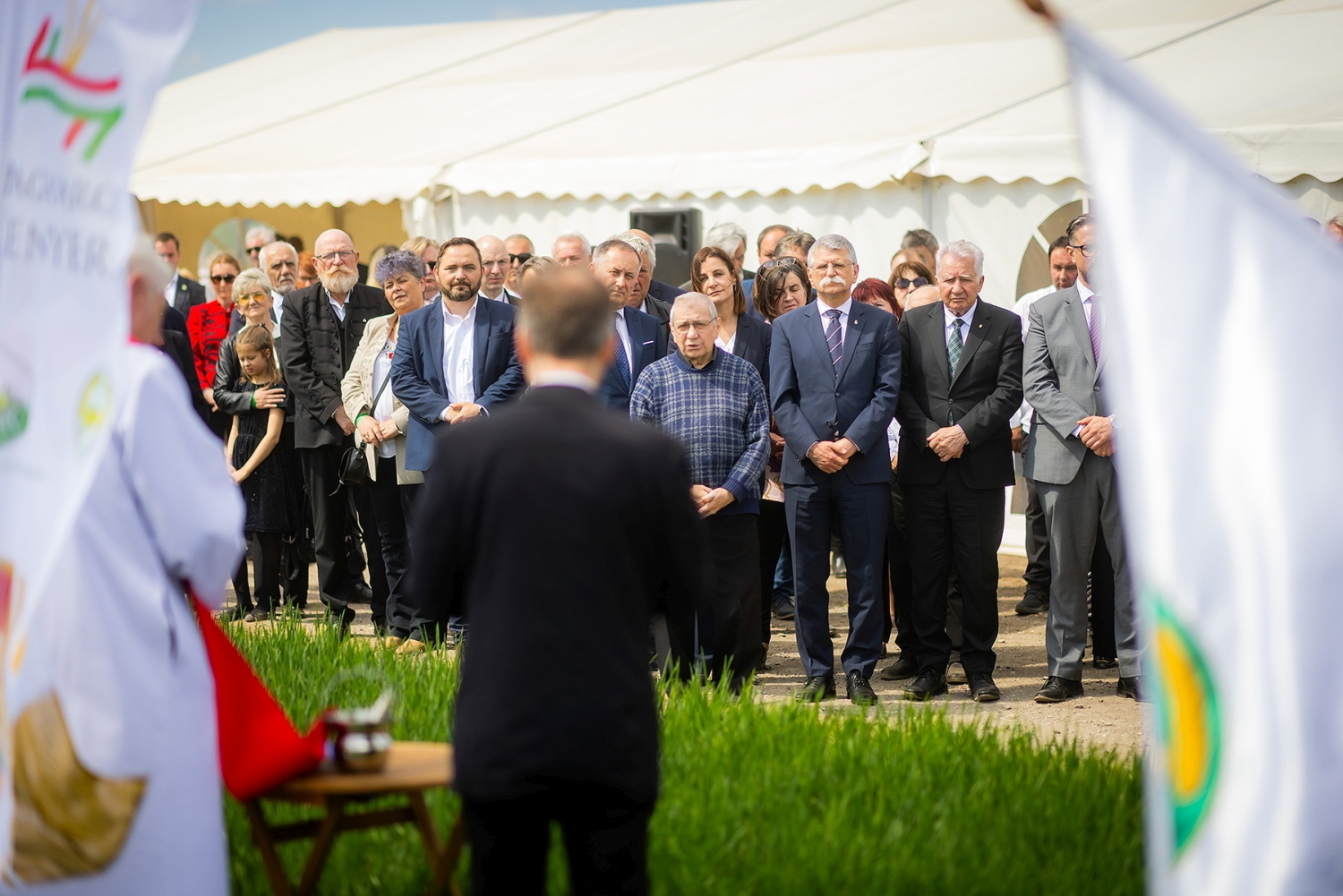A Magyarok Kenyere Program által közzétett képen Kövér László, az Országgyűlés elnöke (az első sorban j3), mellette Jakab István, az Országgyűlés fideszes alelnöke, a Magyar Gazdakörök és Gazdaszövetkezetek Szövetségének (MAGOSZ) elnöke (j2) a búzaszentelésen a Kárpát-medencei búzaszentelő ünnepségen, a Magyarok Kenyere - 15 millió búzaszem program kiemelt nyitóeseményén Zentán 2026. április 24-én.