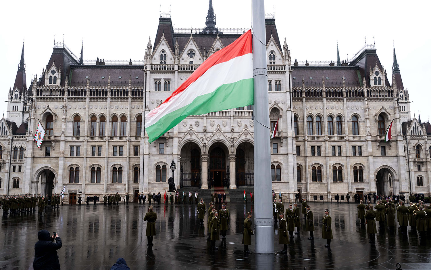 Március 15. - Felvonták a nemzeti lobogót az Országház előtt