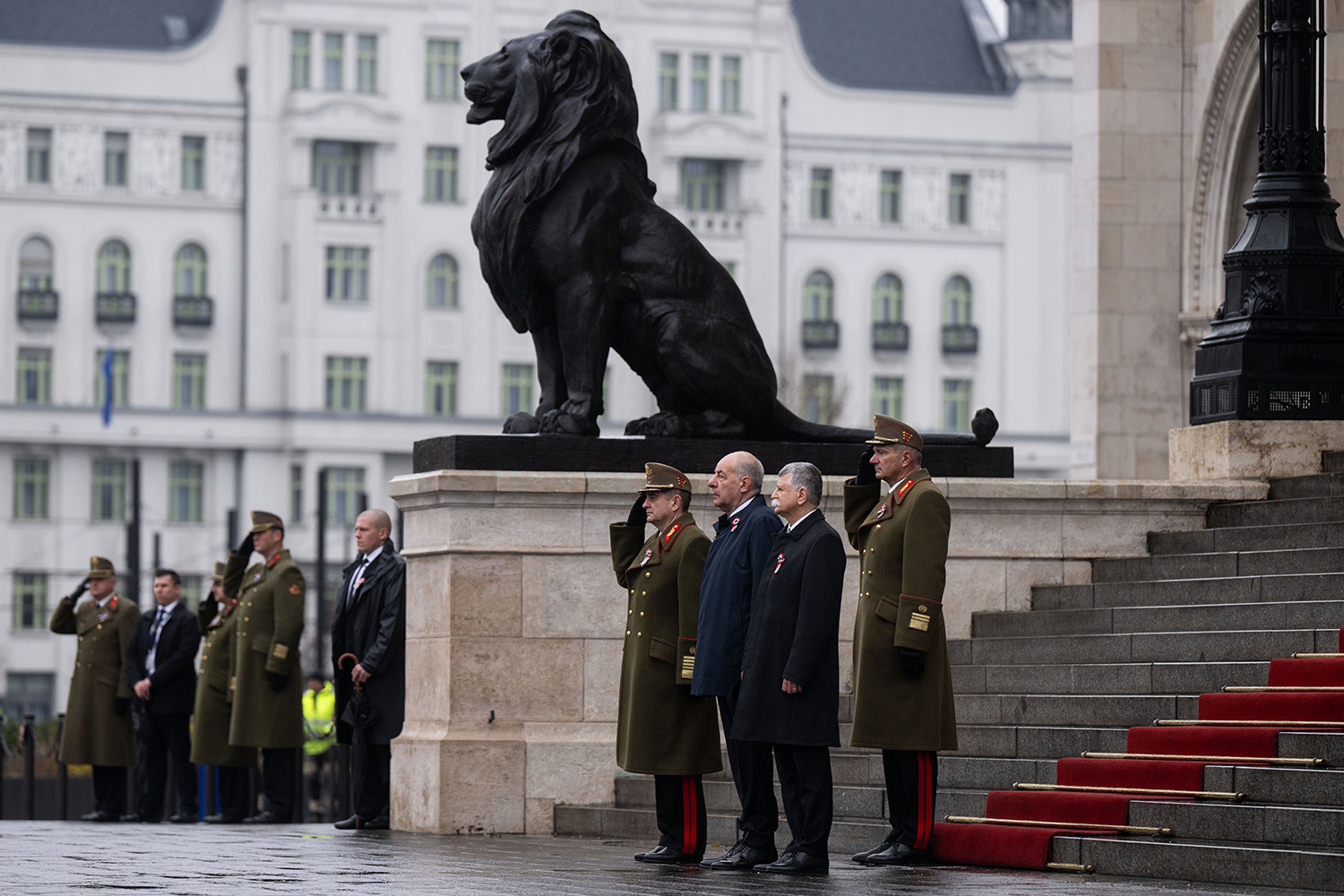 A lobogót Sulyok Tamás köztársasági elnök és Kövér László, az Országgyűlés elnöke jelenlétében, a Himnusz hangjaira a honvédség díszegysége vonta fel az Országház előtt. Az eseményen közreműködött a Magyar Honvédség központi zenekara, a 32. Testőrezred, a Gróf Nádasdy Ferenc Huszárosztály és a nemzeti lovas díszegység.
