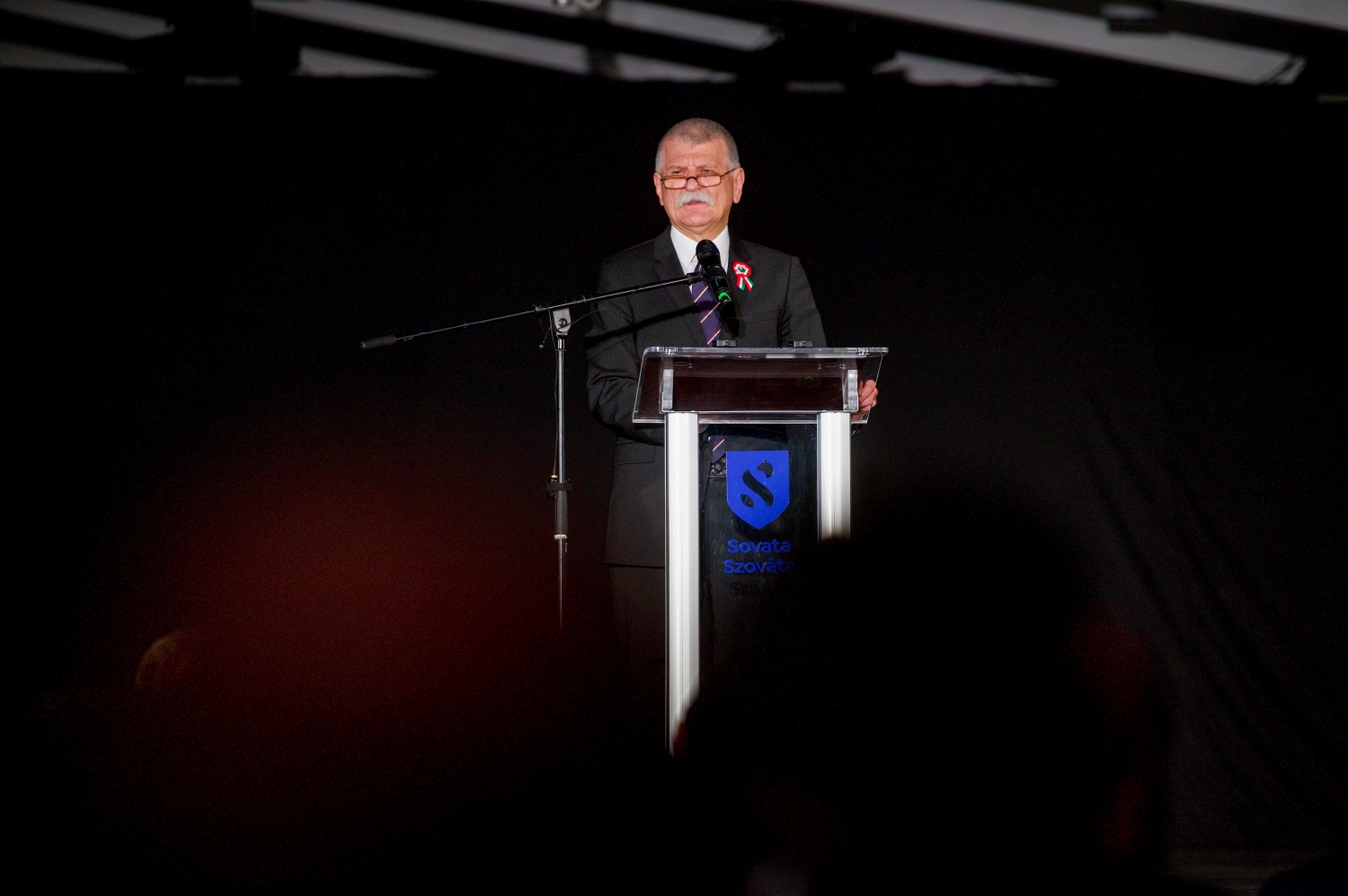Kövér László, az Országgyűlés elnöke beszédet mond az Erdélyi Hivatásos Táncegyüttesek XX. Találkozójának megnyitóján Szovátán 2026. március 18-án.