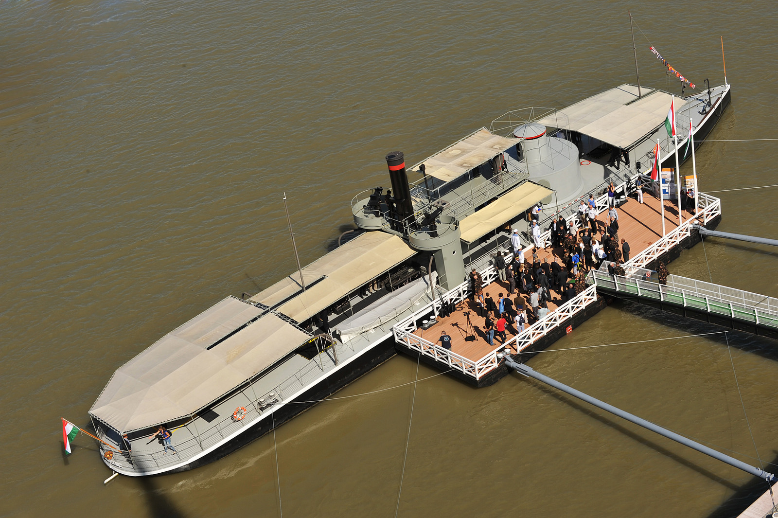 A LAJTA MONITOR MÚZEUMHAJÓ KIKÖTÖTT AZ ORSZÁGHÁZ ELÉ