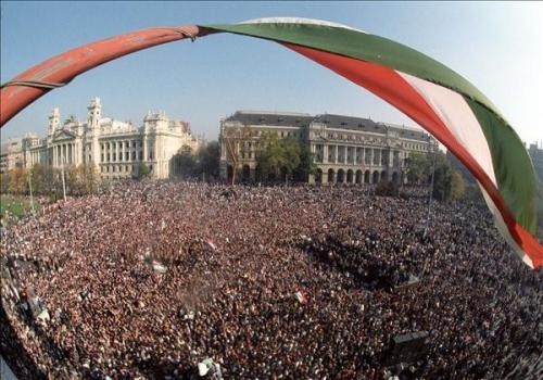 Mintegy százezer fős munkástömeg vonult az Országház előtti térre.